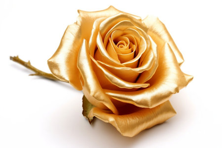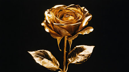 Romantic golden rose isolated on black, with dramatic shadows and soft lighting for a premium aesthetic