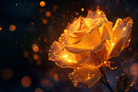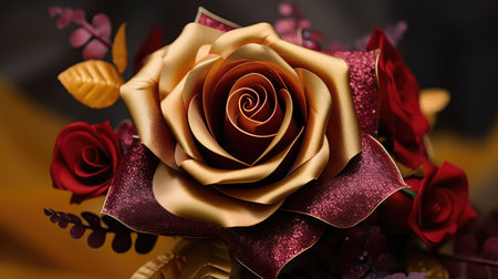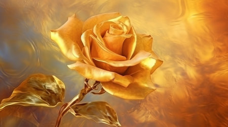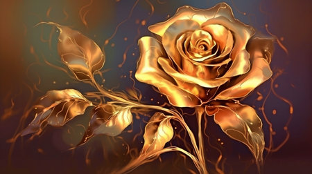 Digital artwork of a gorgeous gold rose in the background. GENERATE AI