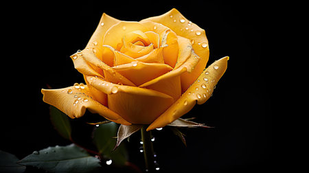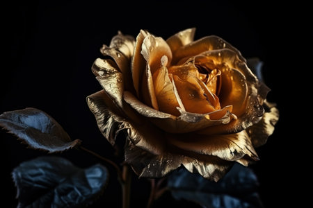 Golden rose with black leaves on black background Halloween or mystery theme elegant love and passio