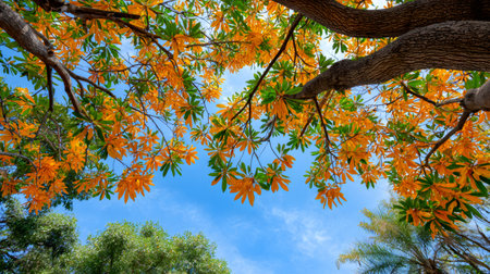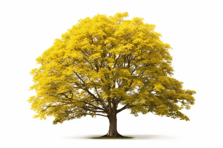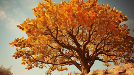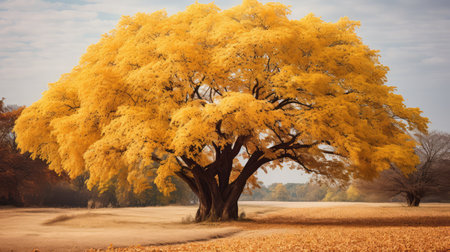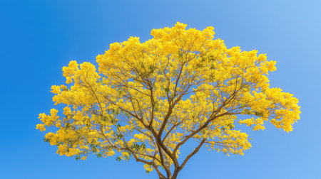 Vibrant Yellow Tree Standing Majestically Against an Azure Sky in Natures Splendor