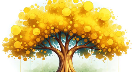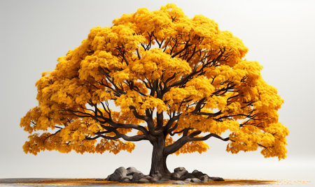 A solitary tree with bright yellow foliage stands prominently against a soft, neutral background. This depiction captures the essence of autumn's beauty and tranquility.