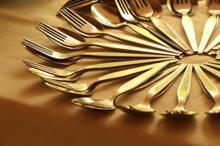 This image features a stunning arrangement of golden cutlery, perfect for modern dining and catering events, showcasing elegance and style.