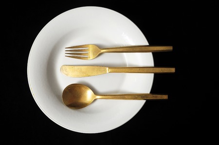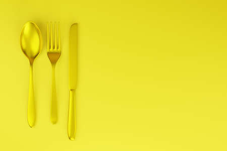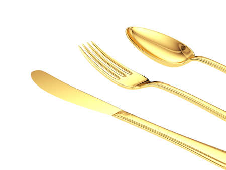 gold knife, fork, spoon isolated close up view