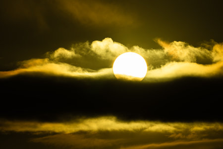 the morning tropical sun seen behind the clouds