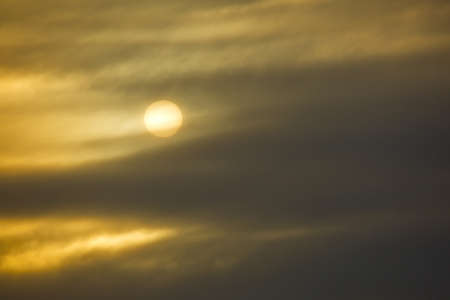 Cold sun in the winter cloudy sky.