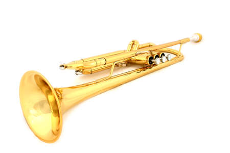 brass trumpet over white background