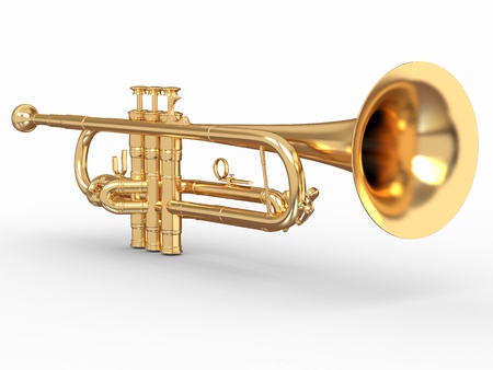 Golden trumpet on white isolated background. 3d
