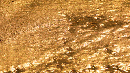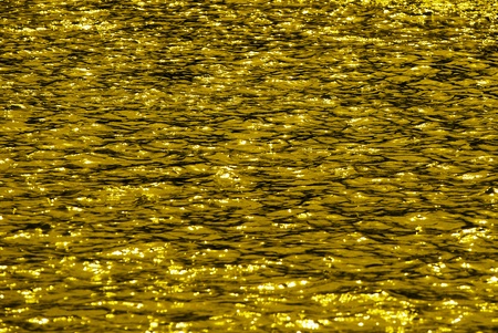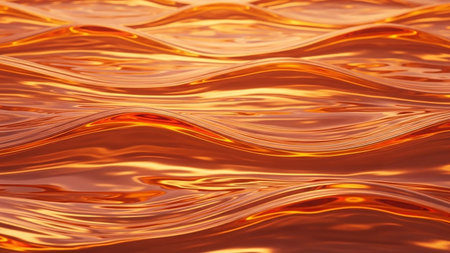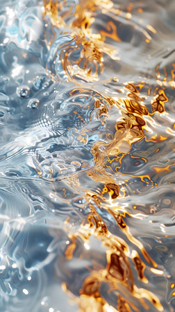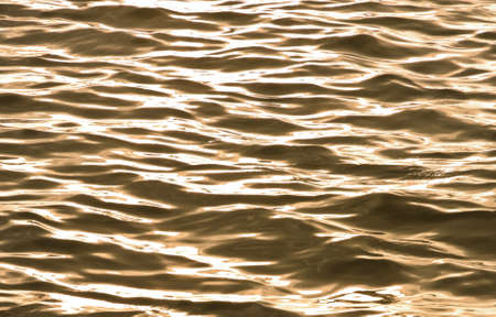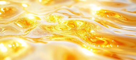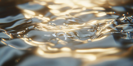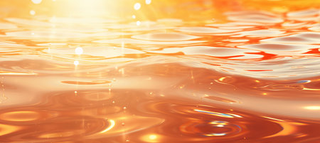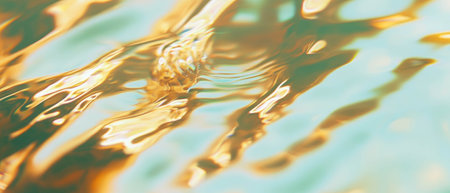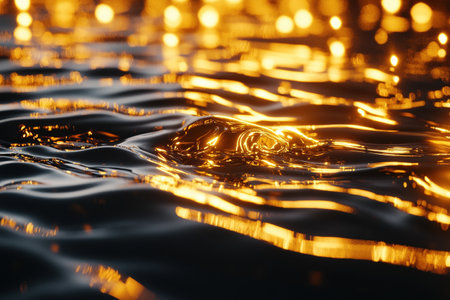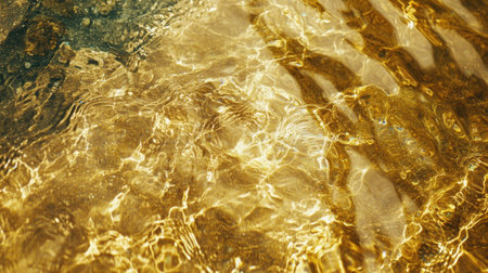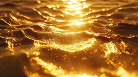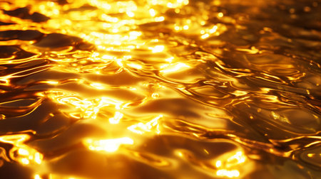 Water surface glowing with golden reflections and sparkling light, highlighting abstract wave patterns and fluid organic textures. Modern background concept