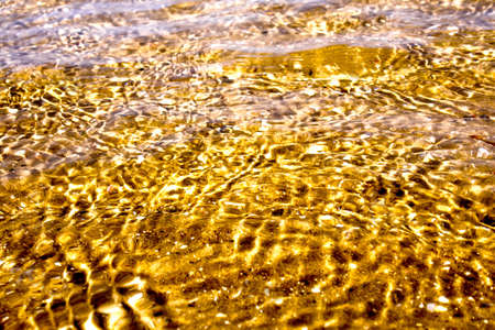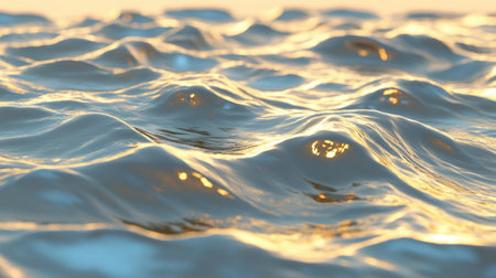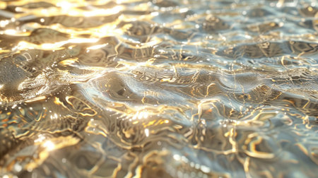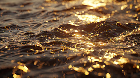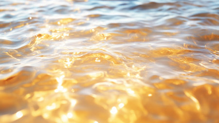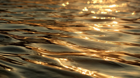 Shimmering surface of water reflects golden hues, creating mesmerizing pattern of light and movement. tranquil waves evoke sense of calm and beauty in nature