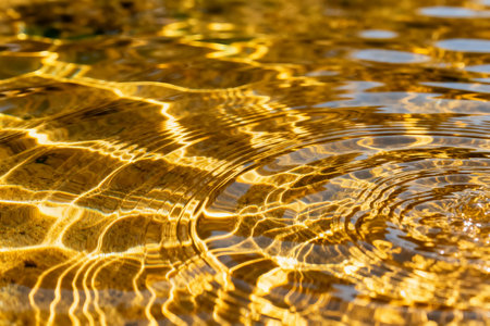 Close-up of water ripples with golden light reflecting on the surface, creating a mesmerizing abstract pattern.