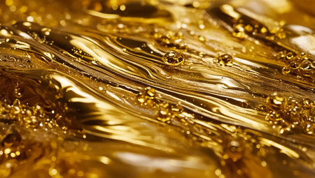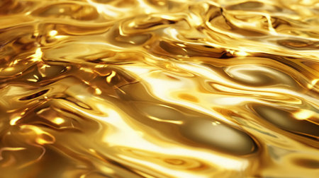 The mesmerizing texture of liquid gold flows with a smooth, reflective surface that creates a luxurious and fluid golden landscape.
