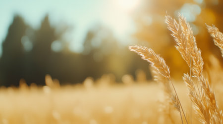 Tall grasses catch the sunlight, creating a tranquil atmosphere in a vast, open field at afternoon.