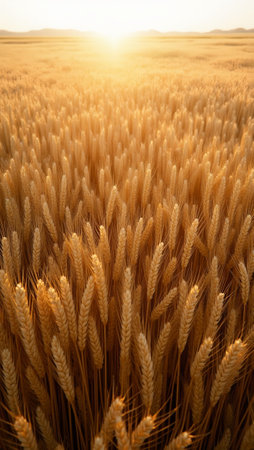 Golden wheat field under sun's warm light