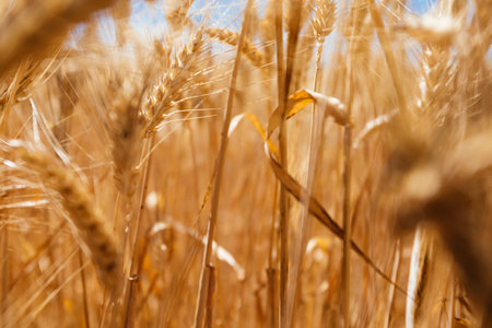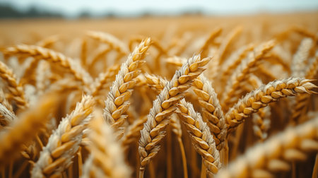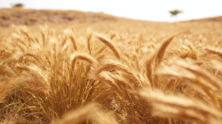 A stunning close-up view of golden wheat swaying gently in the sunlight, capturing the essence of nature's bounty and the beauty of rural landscapes.