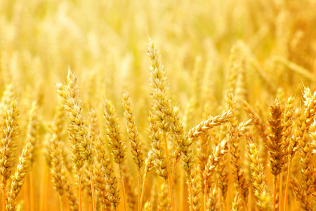 background, backdrop of yellow ears on the beautiful golden wheat field