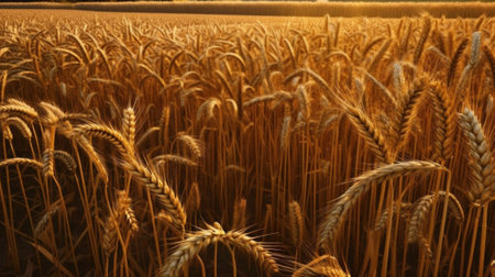 Golden ears of wheat sway gently in the breeze, creating a mesmerizing dance under the summer sun, evoking a sense of tranquility and abundance in a vast field of gold. Generative ai