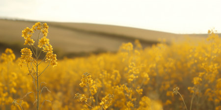 A field of yellow flowers at sunset, soft focus