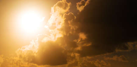 Background of storm clouds before a thunder-storm During this period, beautiful golden yellow sunset.