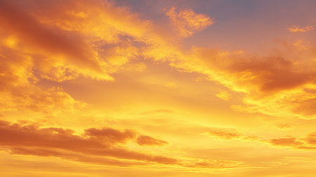 A breathtaking view of a golden hour sky filled with fluffy clouds and vibrant warm tones, creating an atmospheric scene ideal for nature lovers and photographers.