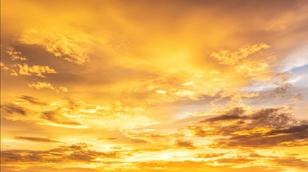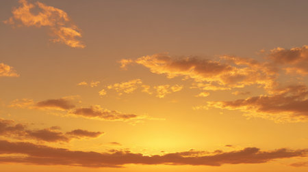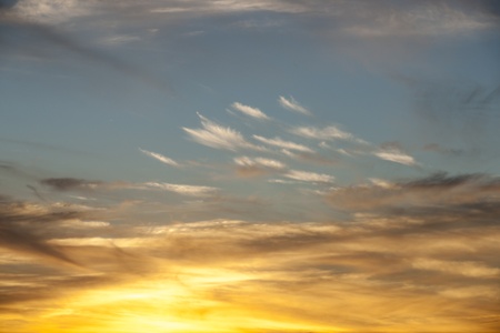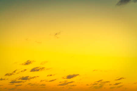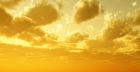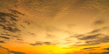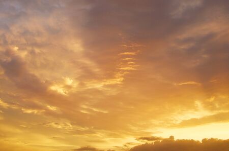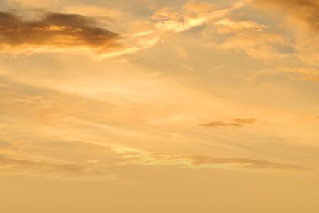 Golden sky with clouds at sunset as background.