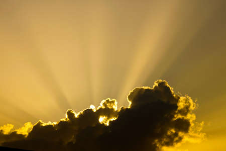 Sunset sun rays through clouds