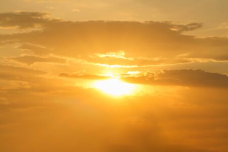 Panorama nature background of golden cloudy sky and sun rising at morning time