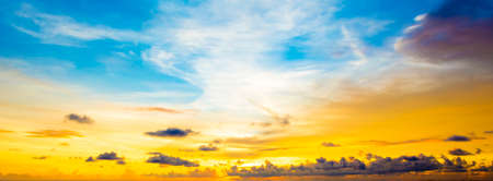 Gorgeous sunrise and twilight sky with clouds, panoramic background image.