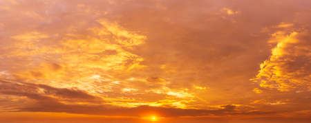 Panoramic golden hour morning orange sky and clouds nature background