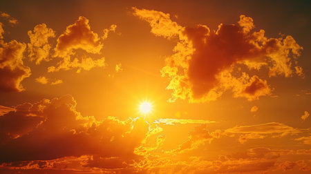 Nature illustration of golden sky at morning with clouds and sun shining brightly