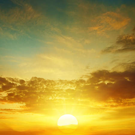 beautiful bright sunset in cloudy sky