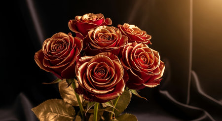 Bouquet of red roses on a black background. The concept of Valentine's Day.