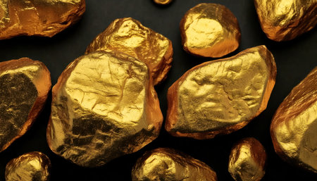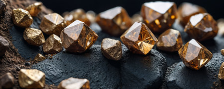 Gold nuggets on a black background, precious stone, gold ore