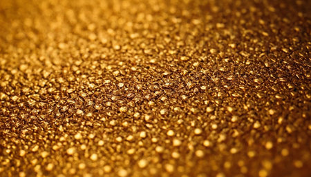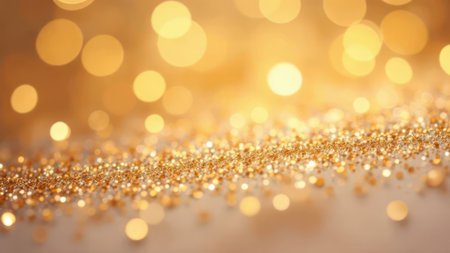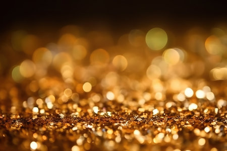 Golden glitter texture creates a festive bokeh background, perfect for christmas, party, or celebration designs