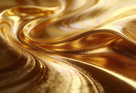 abstract background of golden liquid with waves and reflections on the surface