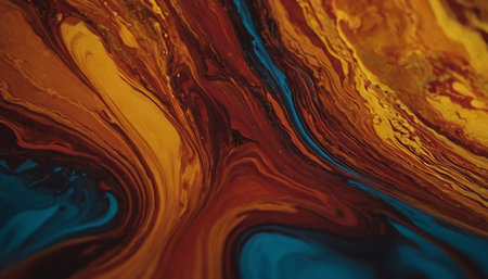 Abstract background of acrylic paint in blue, orange and yellow tones.