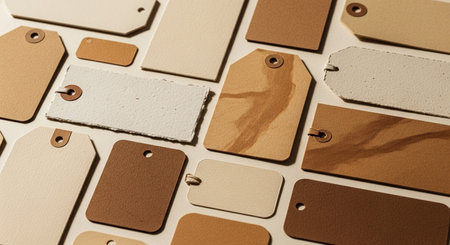 showing a collection of various blank paper tags in different shapes and earthy brown and cream colors.