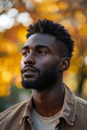 Portrait of a handsome african american man in the autumn park