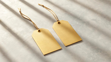 Blank golden price tags on concrete background. 3d rendering.
