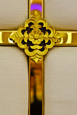 Gold Christian crosses carved on a beautiful background.