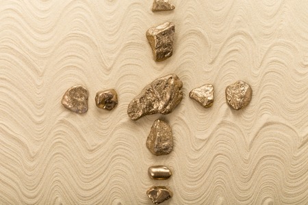Cross of stones on waved sand. Photo can be used as a whole background.