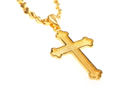 golden christian crosses with chain isolated on white background