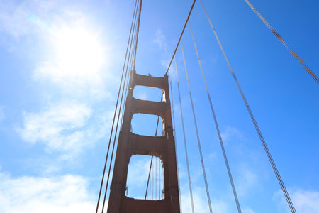 San Francisco, USA - August 2014: Golden Gate Bridge on a sunny summer day. The Golden Gate Bridge is a suspension bridge spanning the Golden Gate, connecting San Francisco Bay and the Pacific Ocean.
