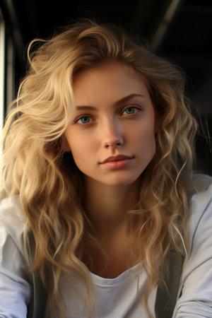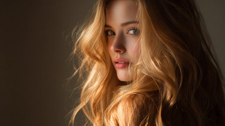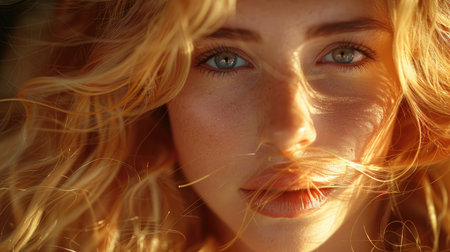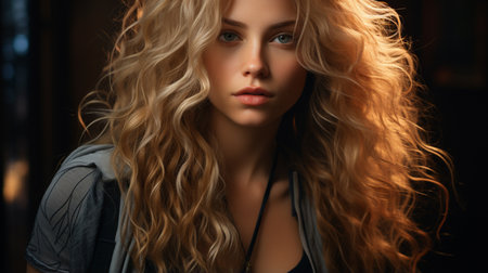 Radiant Beauty: Captivating Portrait of a Gorgeous Woman with Glamorous Golden Curls