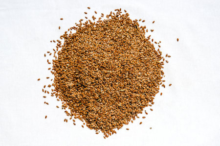 Flax seeds on a pile. Flax seeds on a white fabric.
