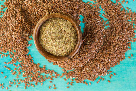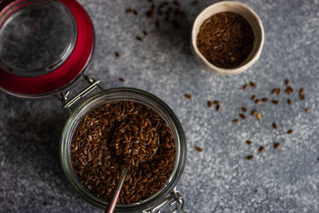 Healthy diet organic nutrition Brown raw flax seeds linseed as natural food background