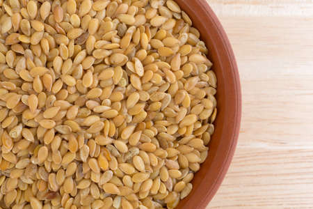 Organic golden flaxseed, linseed grains. Superfood high in fiber.