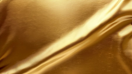 Close-up of shiny gold satin textile with soft, smooth waves