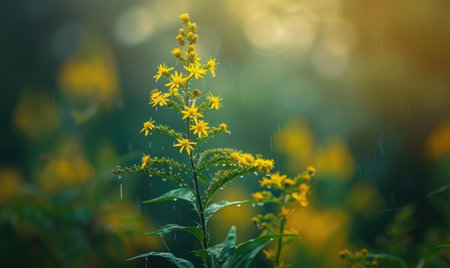 Goldenrod under the rain closeup