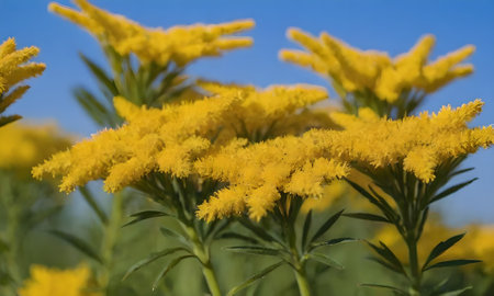 Goldenrod (disambiguation) in sunlit on blue background