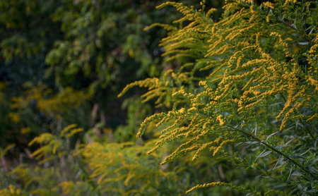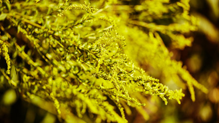 Wild non-cultivated allergic plant, weed hazardous to health- Ambrosia (yellow flowers on ragweed bushes causing seasonal allergies).